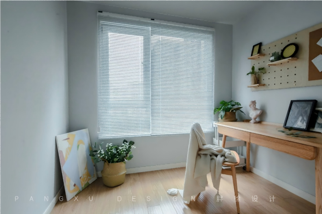 @胖徐设计工作室:百叶窗的设计在保证书房采光的同时,也能避免业主在书房工作时受到过于强烈的阳光照射。
