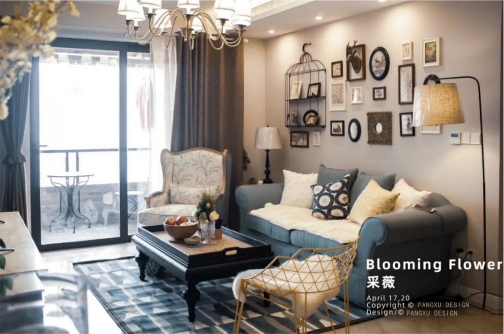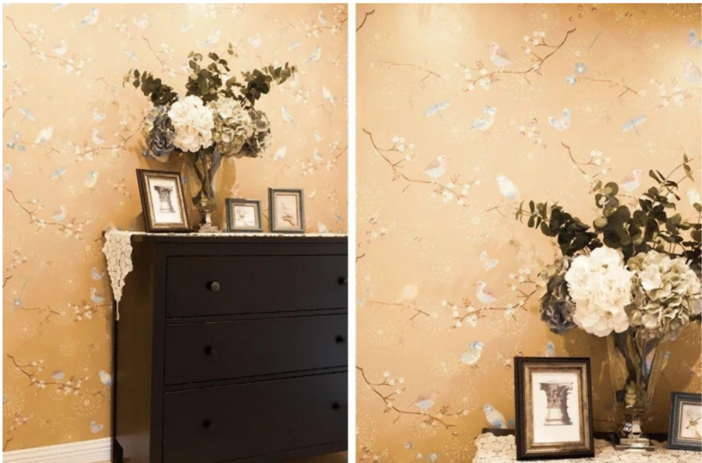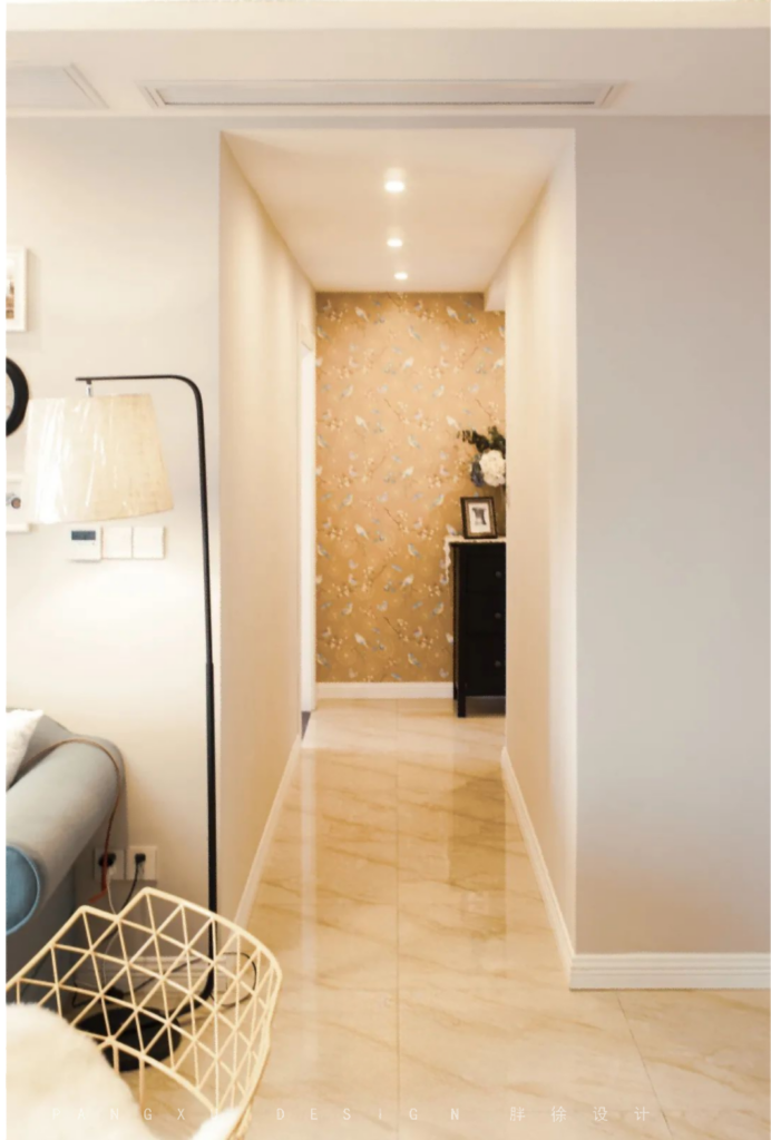 @胖徐设计工作室:屋内春意盎然不减,鸟语花香气息弥漫。壁布相衬“采薇”花束,多诗意的家。