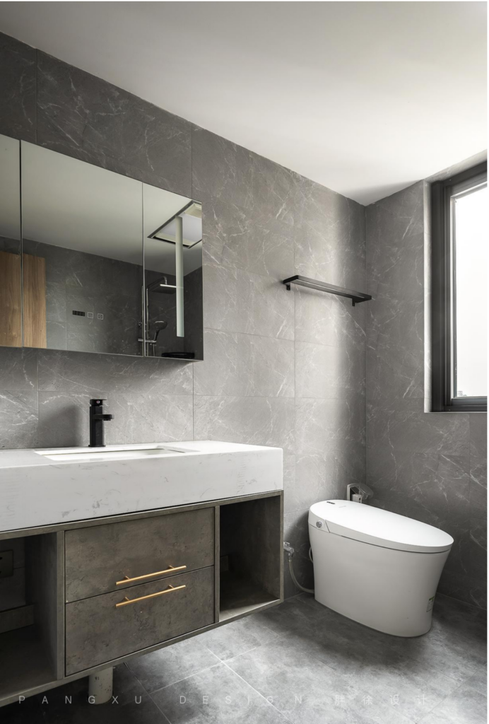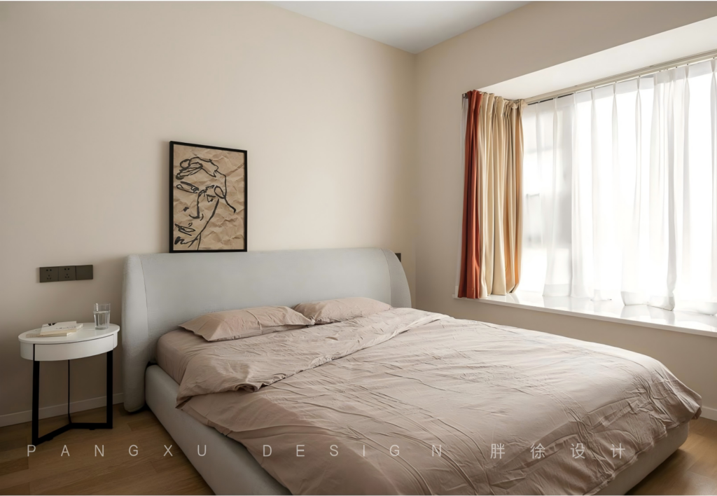 @胖徐设计工作室:老人房,简单温馨实用。暖色素净,有着安神睡眠的空间氛围。配套灰白色系卫生间,色调稳重,防滑智能安全。