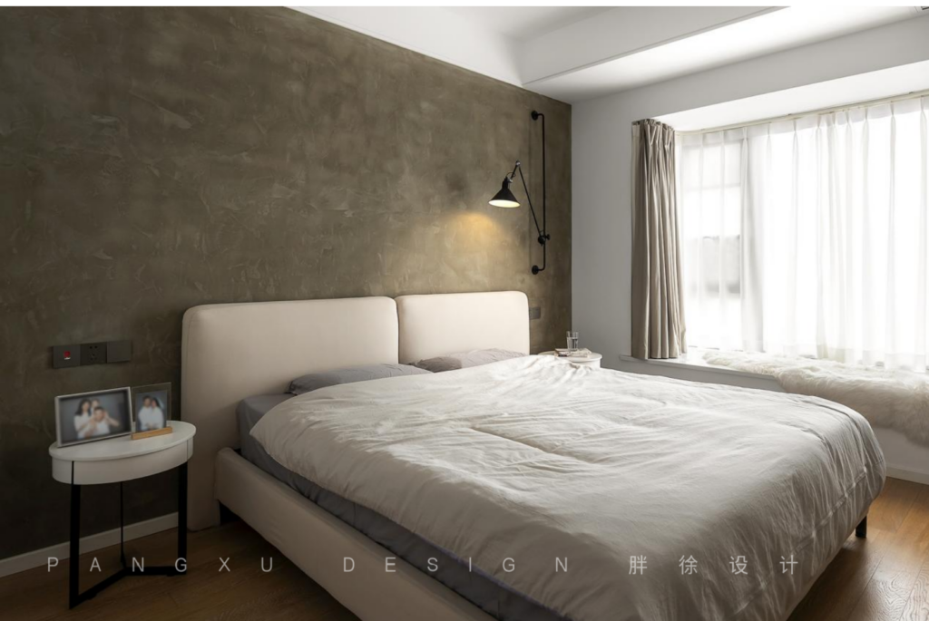 @胖徐设计工作室:粗犷工业的水泥基感,在阳光和夜灯暖光的烘托下,异常和谐,有种说不出的震撼心灵之美。刚硬与柔软的完美搭配,营造淡淡的朦胧烟雾感。