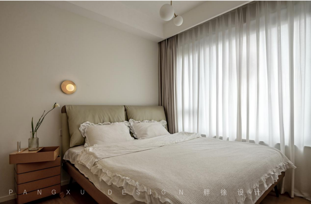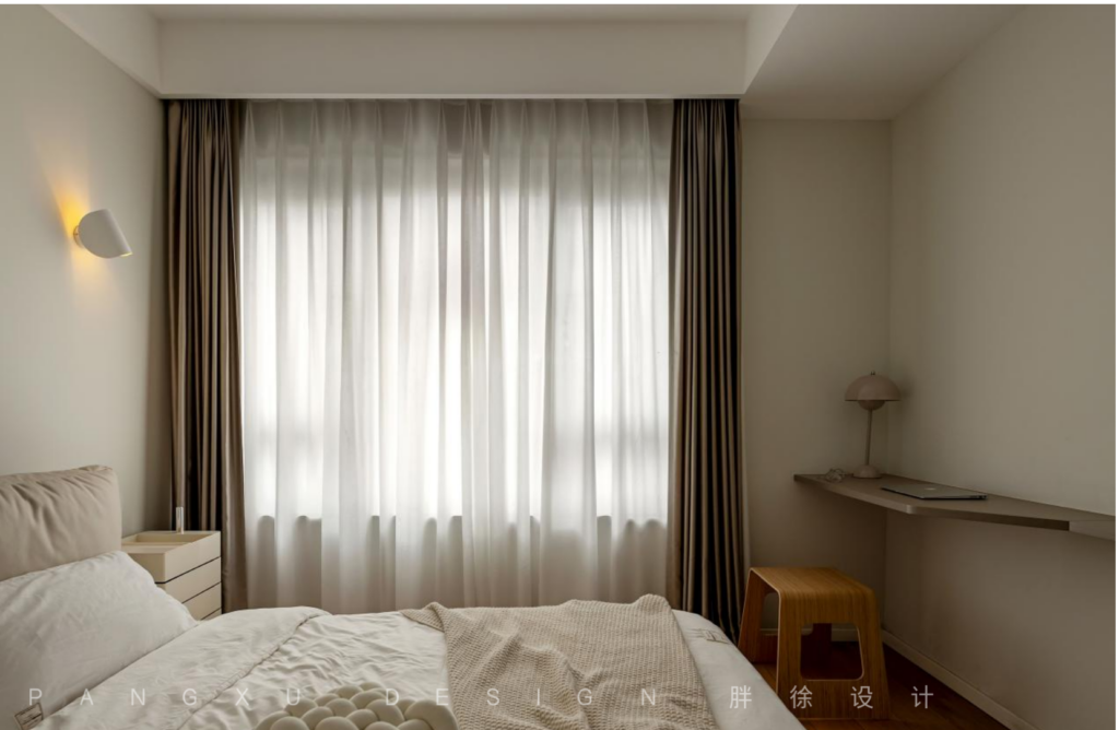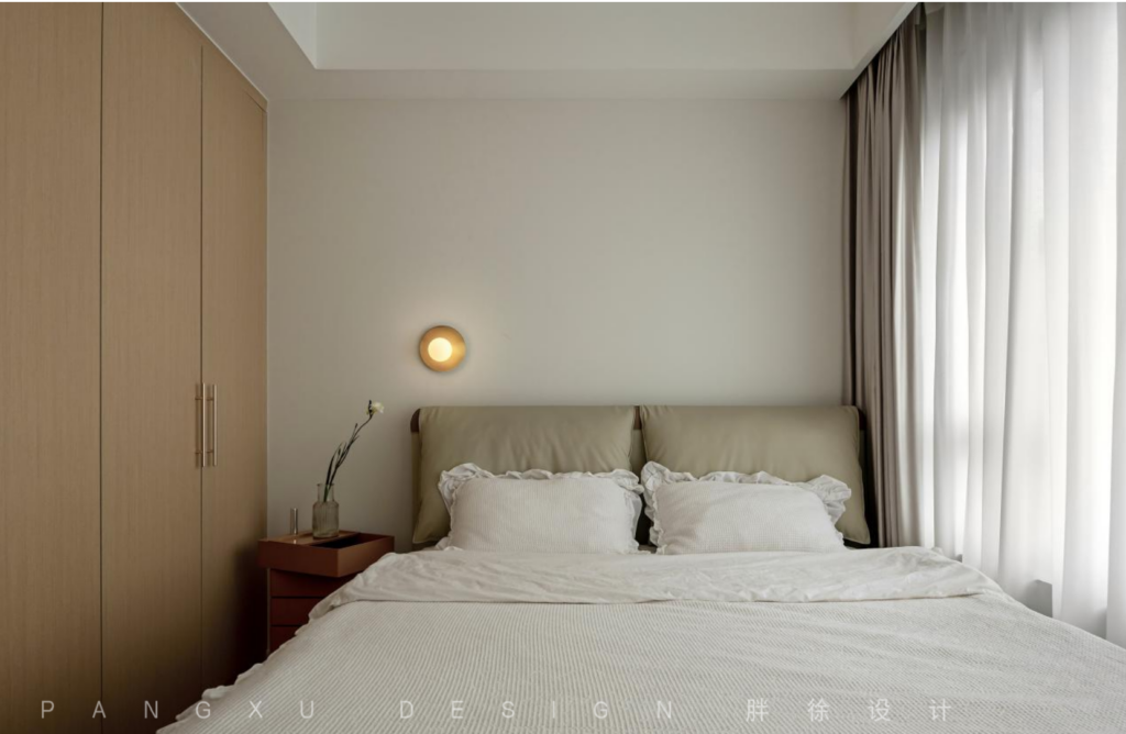 @胖徐设计工作室:次卧清新素雅,木质的衣柜温润质朴,契合于此的宁静平和。
