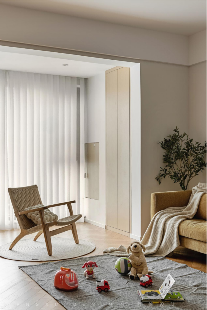 There was no tea table in the living room, which was enough to leave more space for the family and children to interact. The warmth around the family was integrated into the peaceful and good time.
