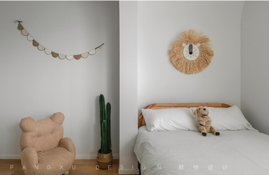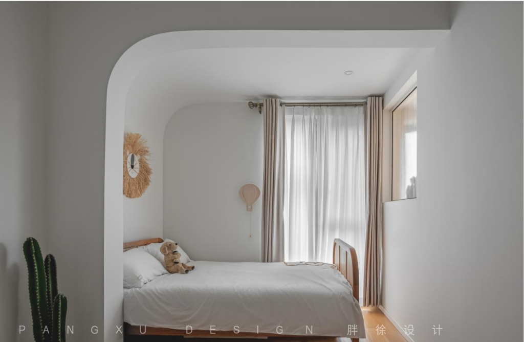 The whole children’s room was bright and clean. There were not many things, but all of them were cute and full of children’s interest. The arc-shaped curvaceous shape brought a softer and spiritual sense to the space.