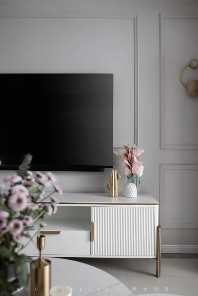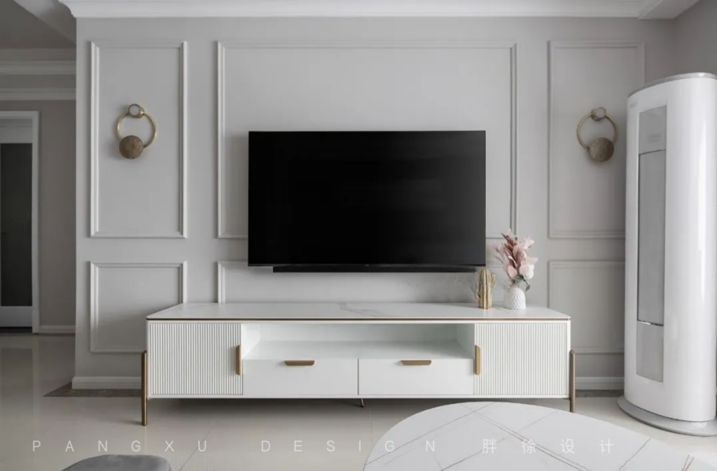 @胖徐设计工作室:男业主放假闲暇时间,小夫妻喜欢来一场X-BOX游戏竞赛。操控手柄,竞技相争。