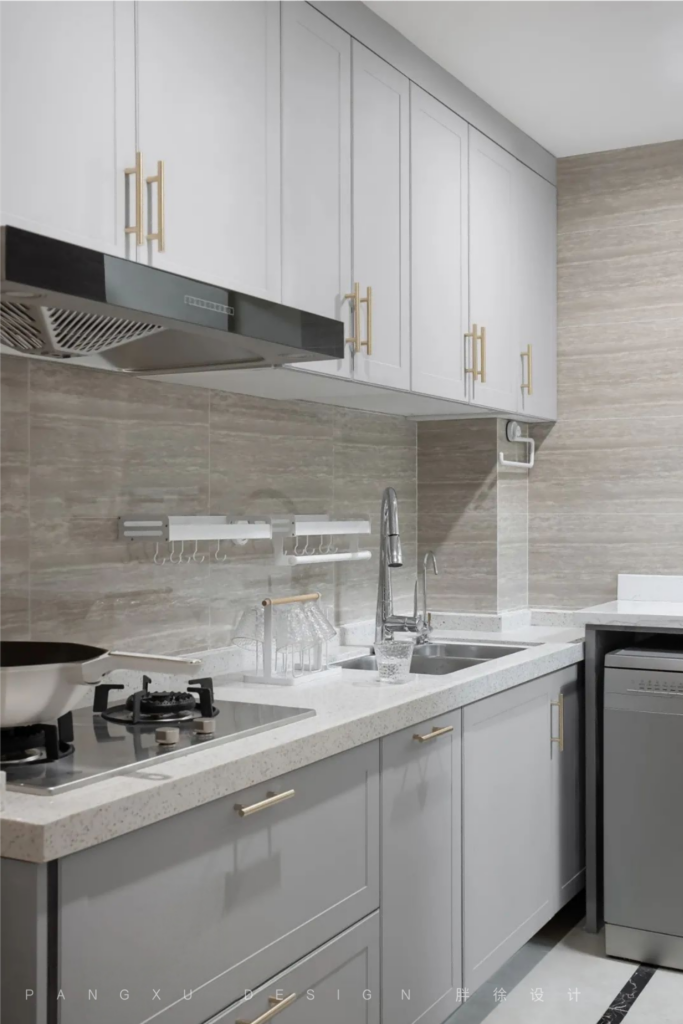 @胖徐设计工作室:厨房更换了柜门,重新作色,让厨房上升几个档次。合理的改造拆除不仅增加厨房的操作面,还给予更多的空间摆放清洗小家电。