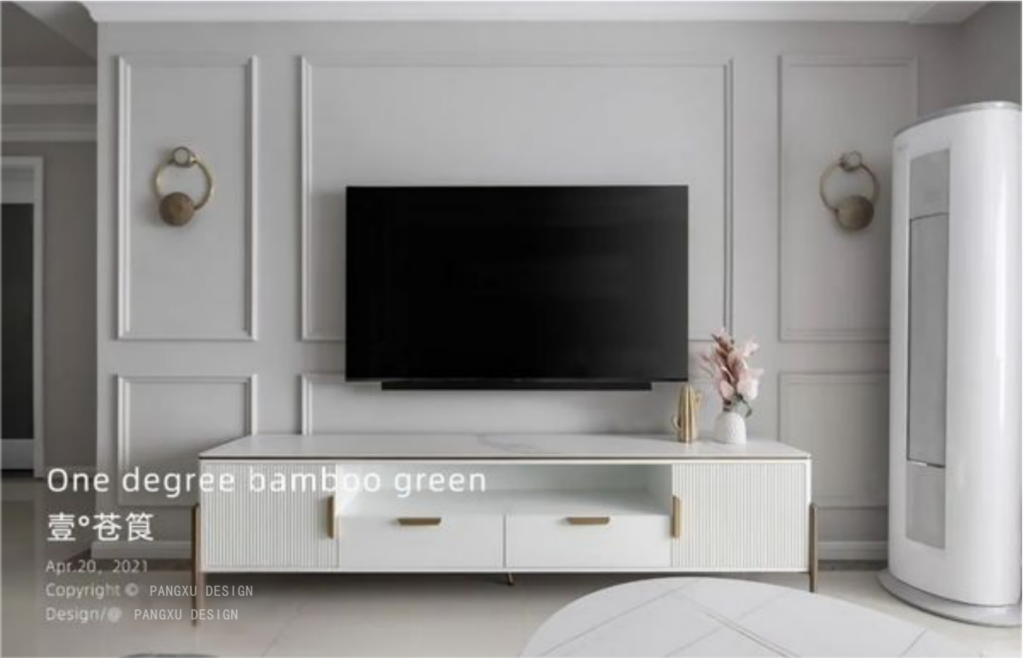 The entrance is simple and elegant, with low saturation of bamboo green and light grey. Tie-in the furniture of metallic qualitative feeling, form a warm Nordic, take a bit light costly style. Enter Entryway, add right side sundries cabinet body, limited space for a double door refrigerator. Increase storage space for shoes, hats and Sundries.