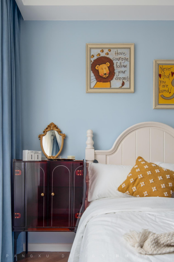 Children’s room was decorated with cartoon paintings full of children’s interest. The quiet sky was blue, pure and innocent. It was a unique children’s harbor.