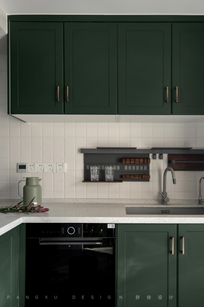 @胖徐设计工作室:用奶白来中和柔软复古墨绿,阳光洒入,留下斑驳的光影,是时间赐予生活的温柔印记。