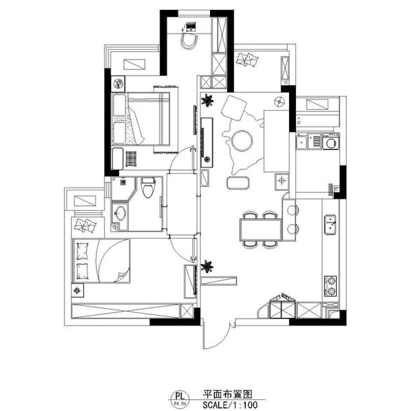 1、书房并入主卧内使用,用书柜和墙体阻隔客厅连接空间,保证了主卧私密性的同时也借位增大了书房空间;