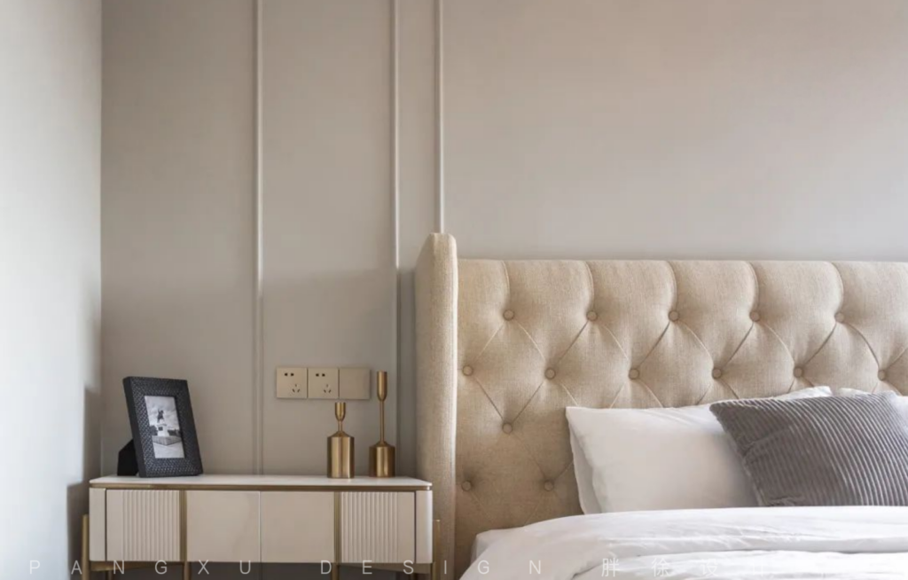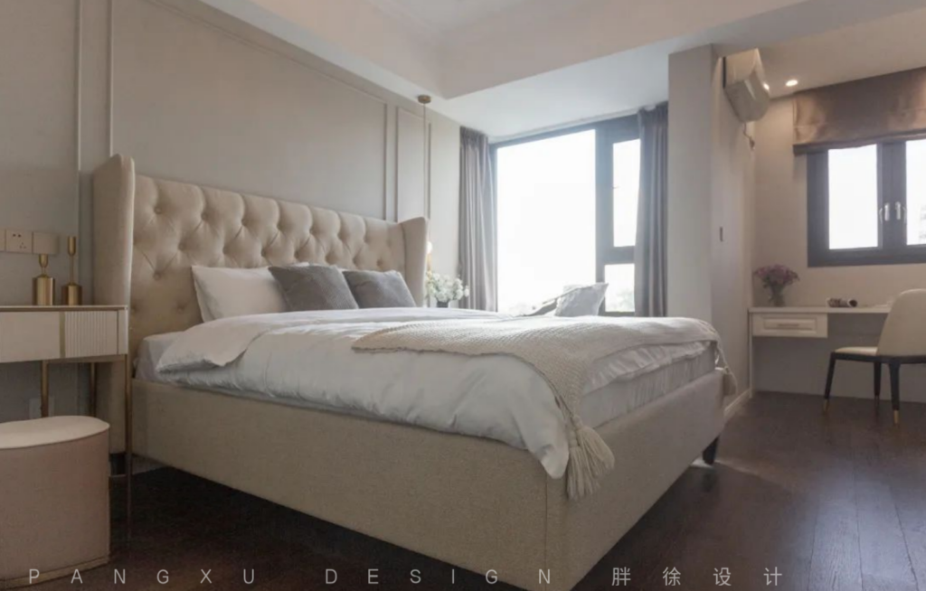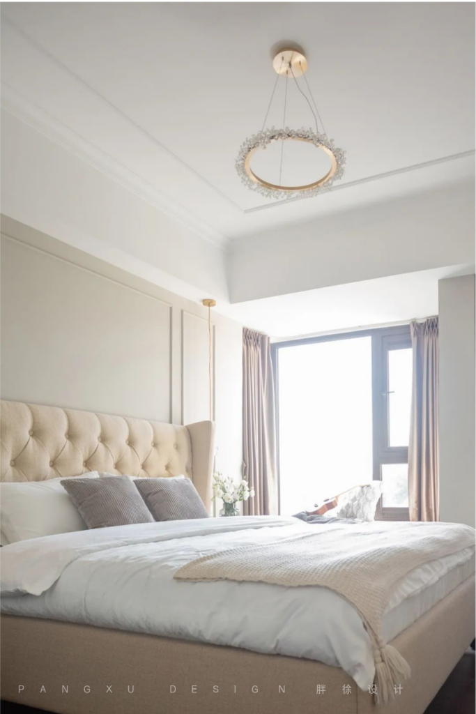 @胖徐设计工作室:拉开窗帘,推开窗门,迎接清晨第一缕阳光来临,暖暖的米棕色,温馨柔软,在深夜又带来治愈系的休憩港湾。