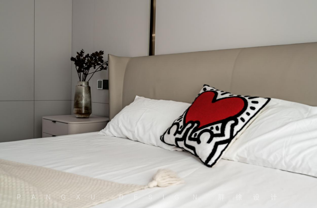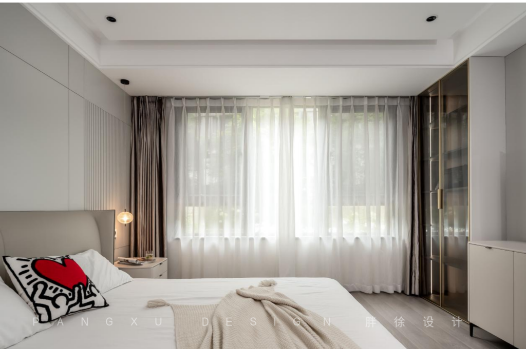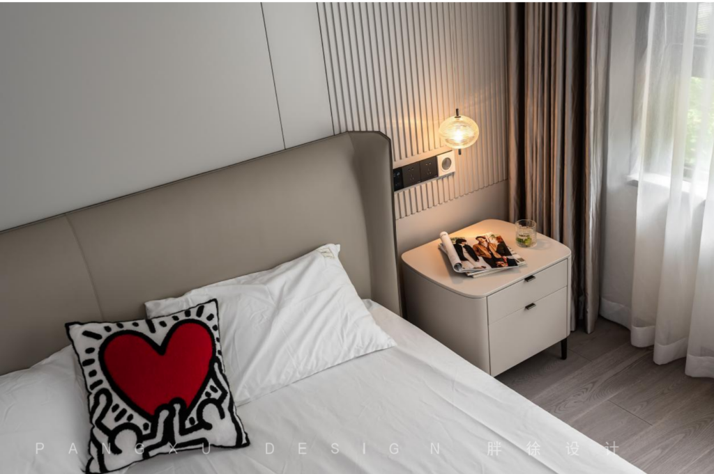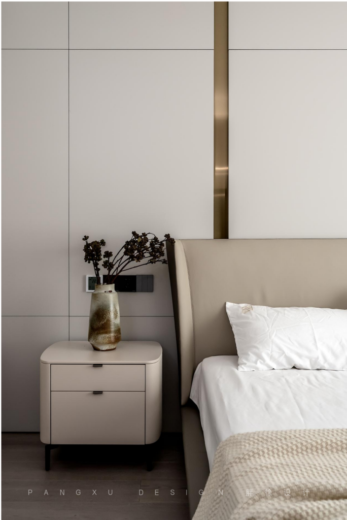 @胖徐设计工作室:简单一点的素雅色彩更易打造出静谧的睡眠感,深邃的夜,用一盏小夜灯点亮足矣。