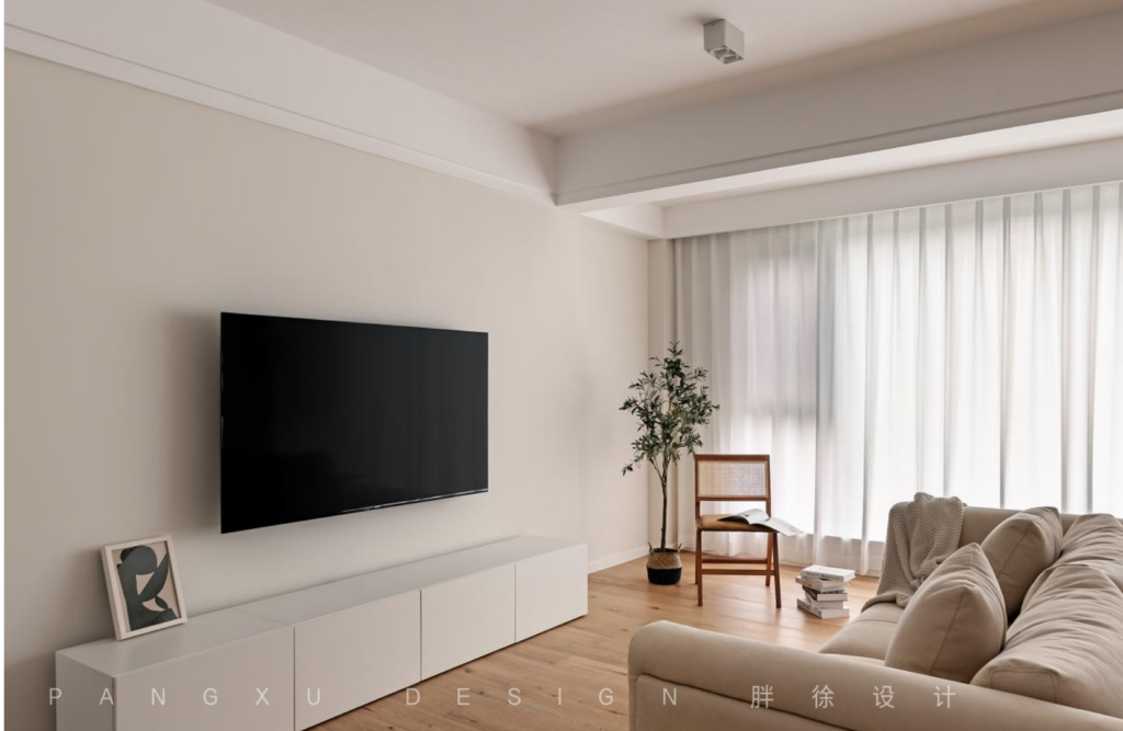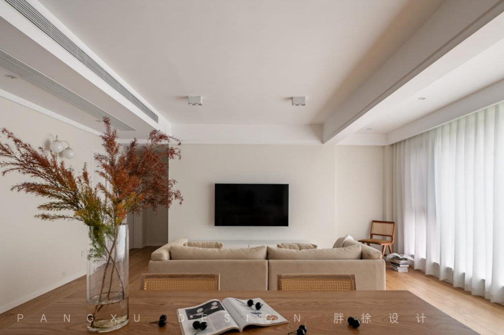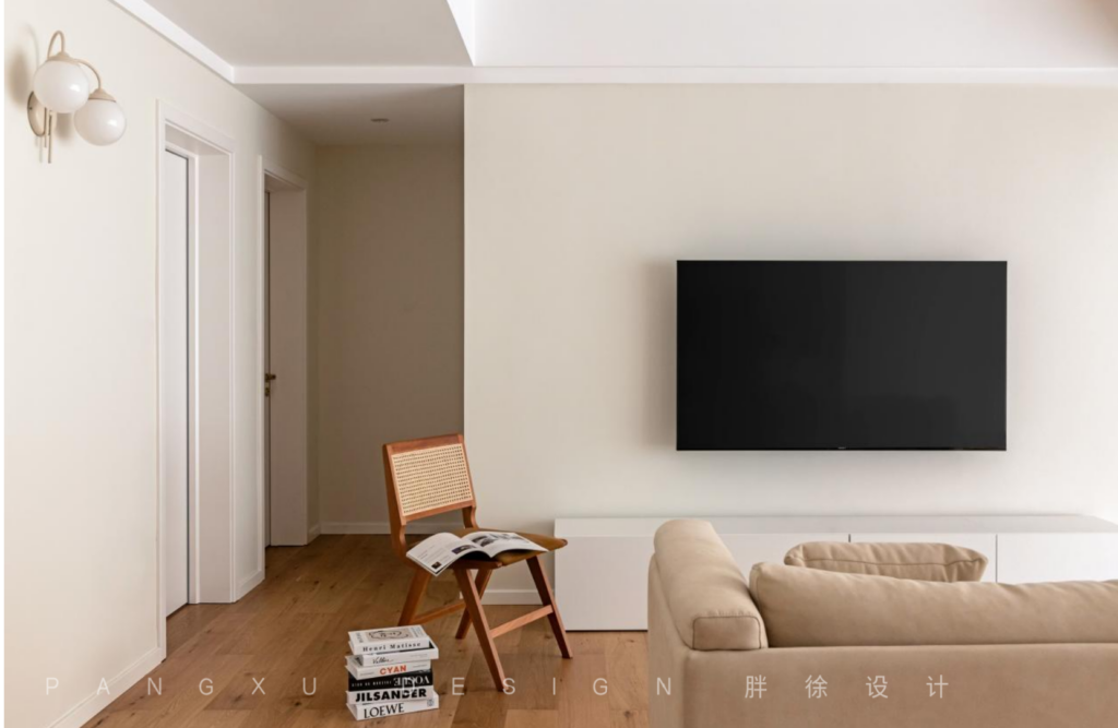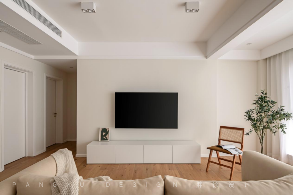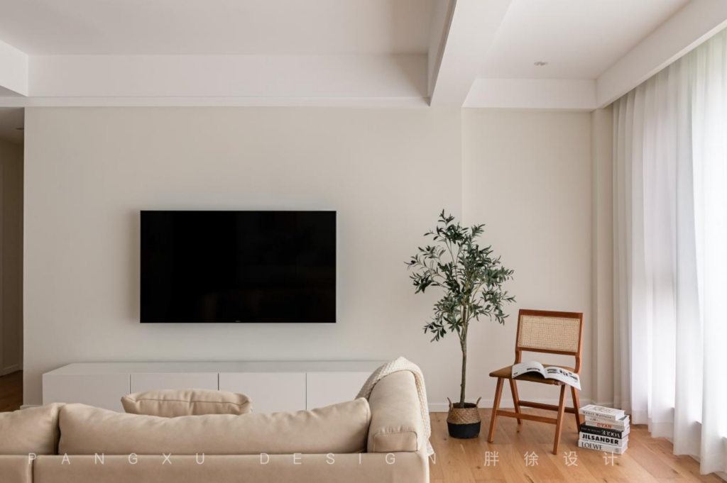 @胖徐设计工作室:客厅整体色调统一,大面积的留白让整个空间看起来更干净明亮,木质的放松舒适之感,在此发挥出恰到好处的效果,温润质朴。