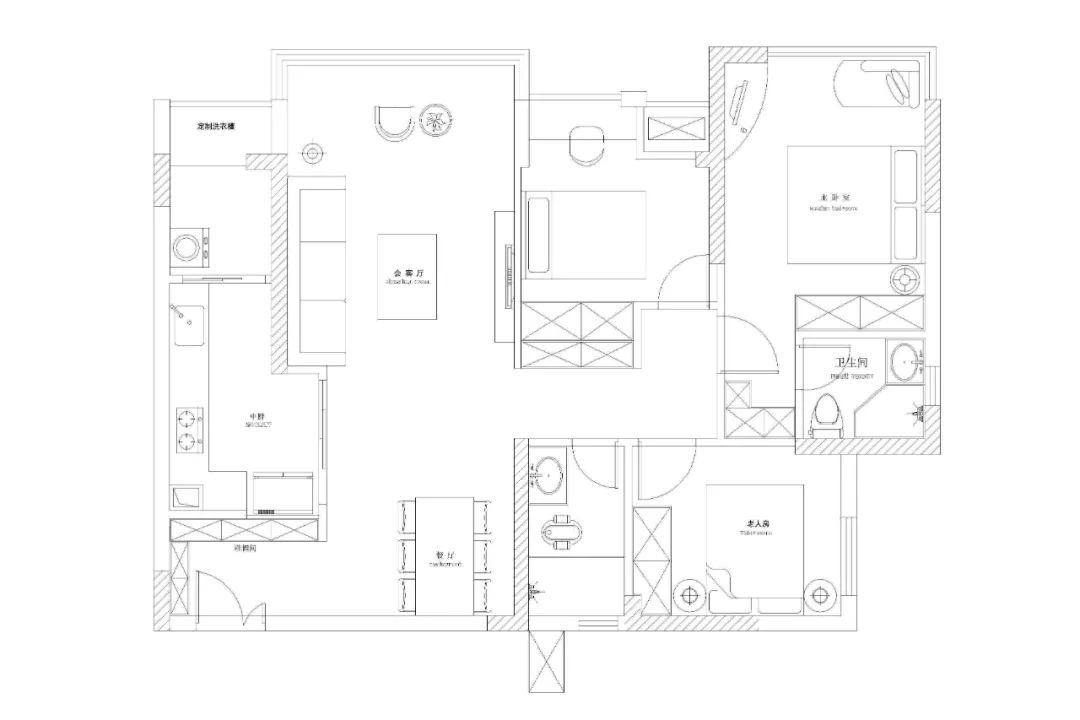 4. 将原有的书房连通阳台,改为老人房,拆除儿童房与主卧的飘窗,合理利用,增大使用空间;