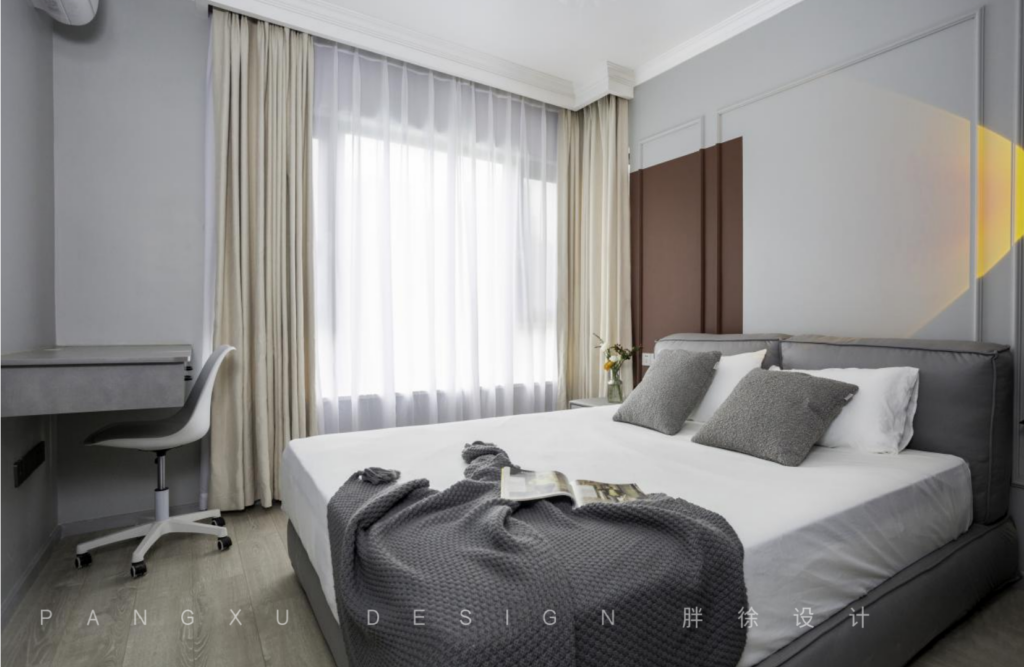 @胖徐设计工作室:温柔的落地灯,轻薄的纱帘,静谧的单人椅,在这里组合拼凑出恬淡的岁月温柔。