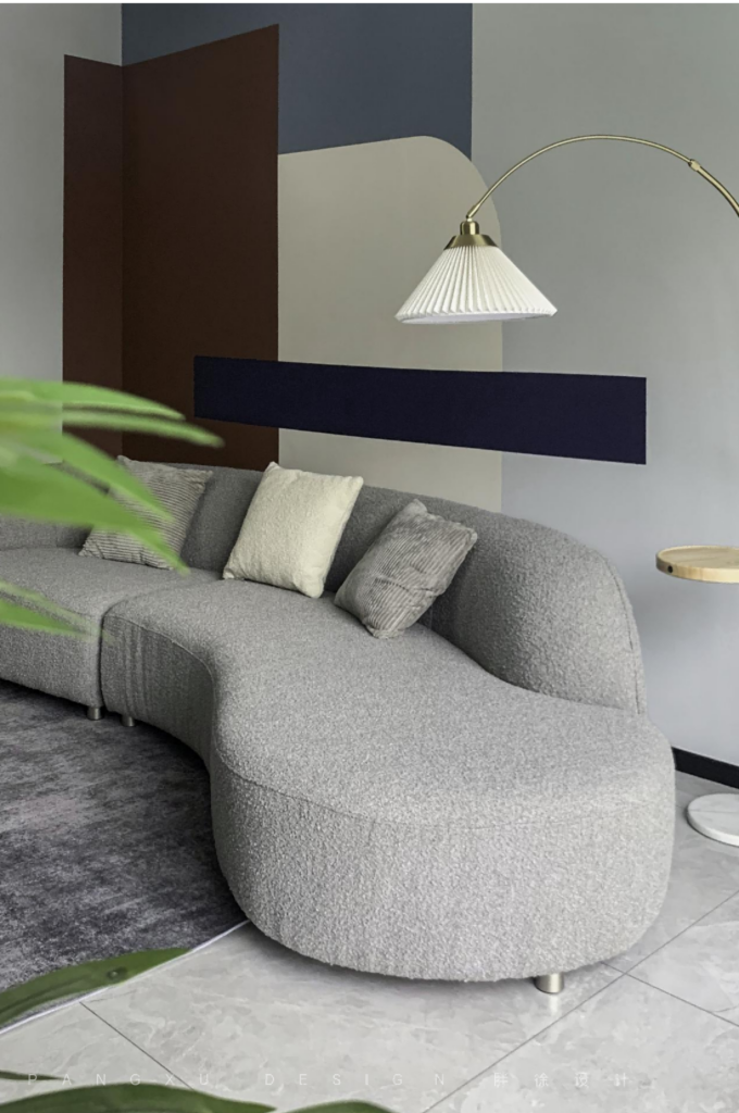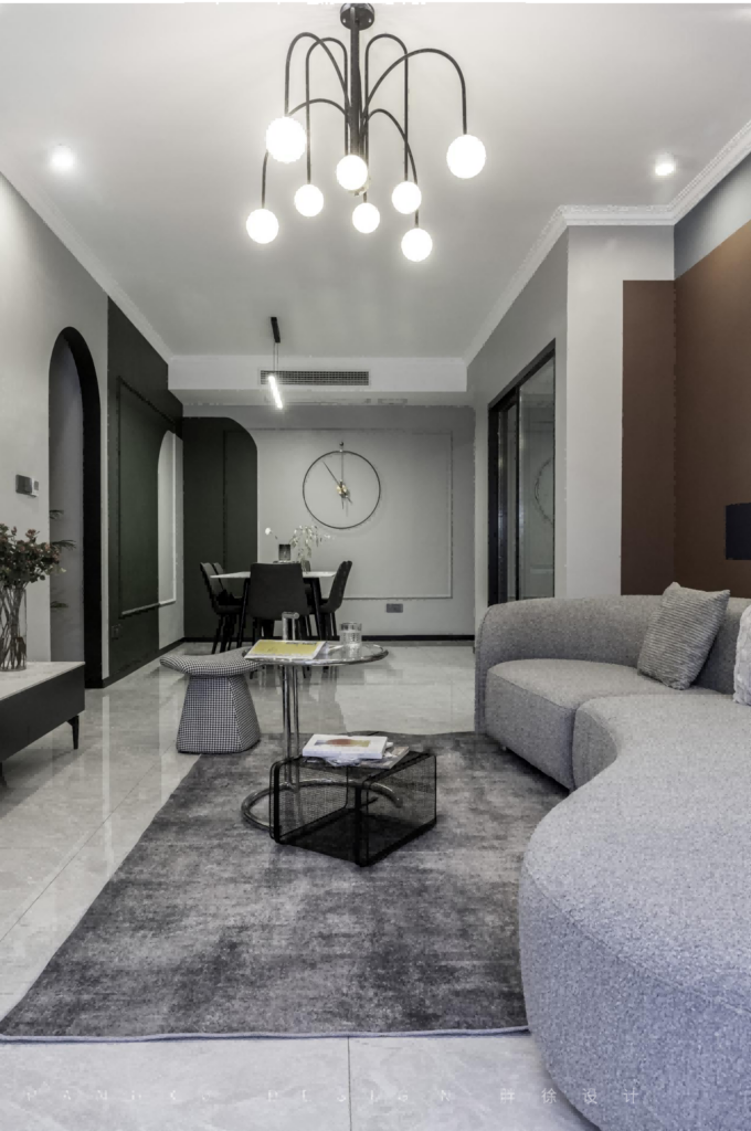 The floor to ceiling window matched with the gauze was very gentle. The simple tea table was convenient to move, and it brought more space for activities. The arc-shaped sofa was soft and comfortable. Even the simplest black and white match could state different harmony and lively.