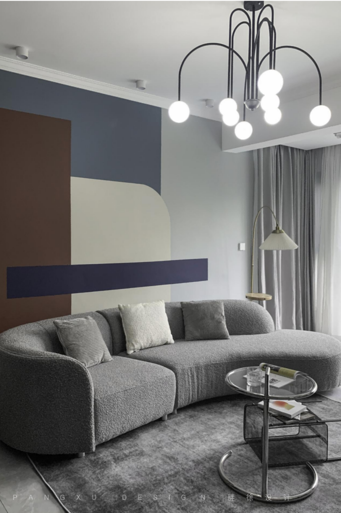 @胖徐设计工作室:高饱和深色与浅色的碰撞,在这里绽放属于自己的色彩氛围,不规则的色块拼接出独特的空间一角。