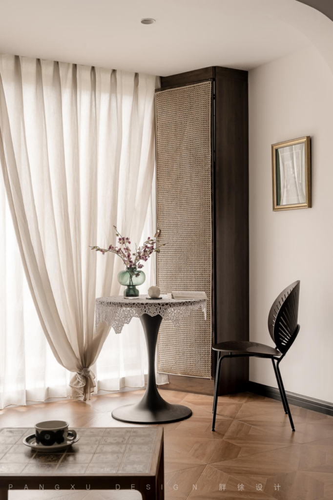 The tenderness brought by warm color and the retro style neutralized here are no longer limited to the sofa placed against the wall, and then give the space a little flexibility. The curved curve is more gentle and soft.