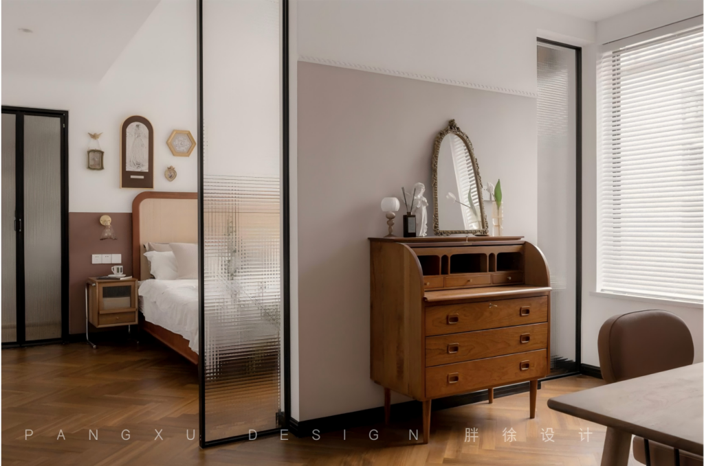 @胖徐设计工作室:长虹玻璃留下的朦胧美在此展现,如同薄雾一般地清透朦胧,内外之间,一面是静谧,一面是安稳。