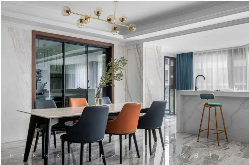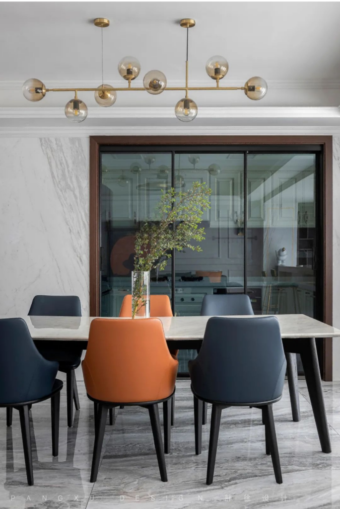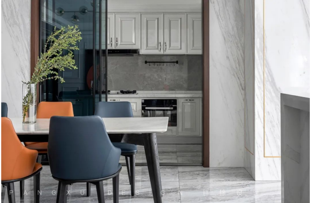 @胖徐设计工作室:厨房、餐厅,用一扇透明玻璃滑门隔开。门里是平淡生活的柴米油盐,门外是温馨岁月的酸甜苦辣,一日三餐诠释着他们最简单幸福的小日子。