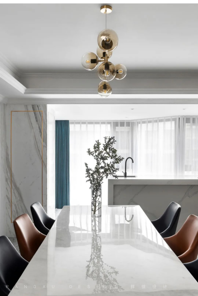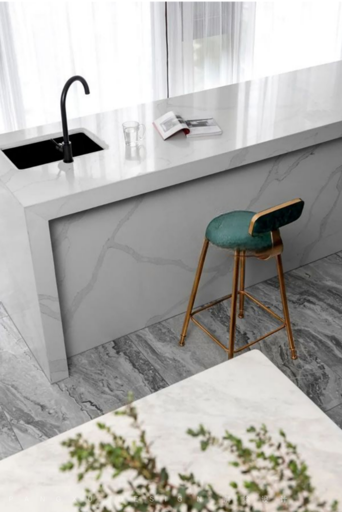 @胖徐设计工作室:石英石一体岛台,抗污更耐磨,干净利落,彰显品质。