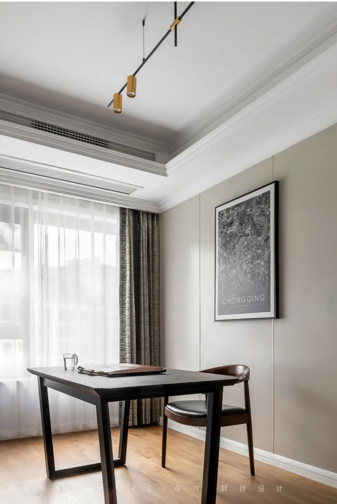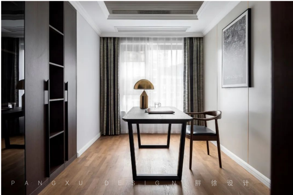 @胖徐设计工作室:书房用色素雅沉静,办公学习,更让人静心专注。