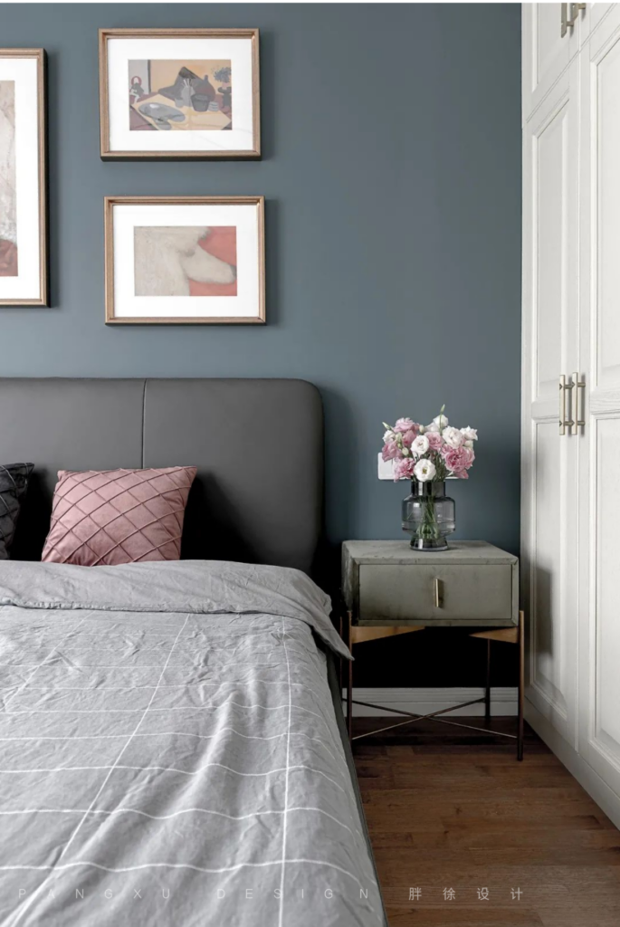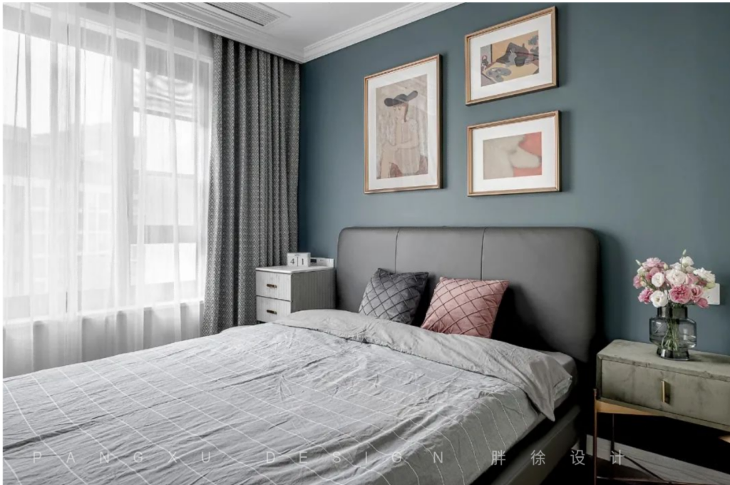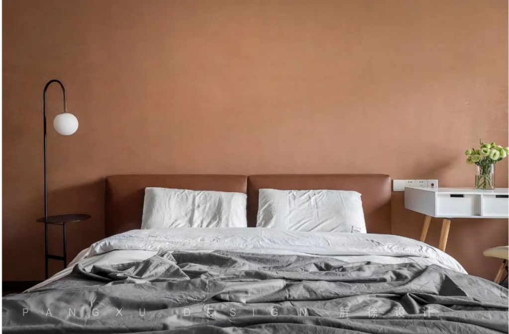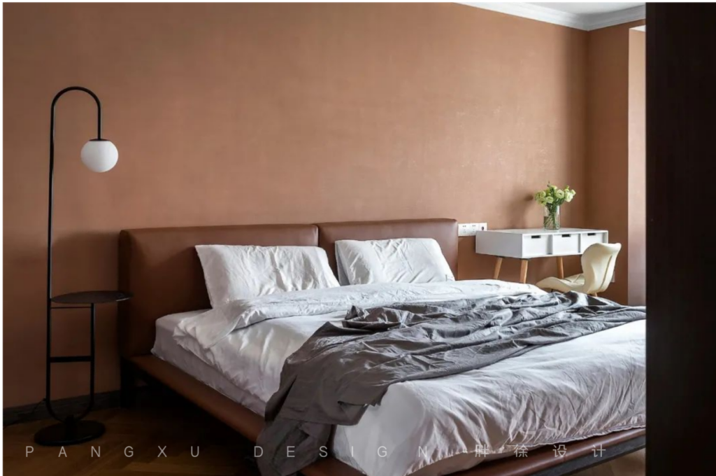@胖徐设计工作室:主卧是温馨的橘色调,落地灯诉说着温柔。对镜梳妆,斯斯耳语,之子于归,宜其室家。