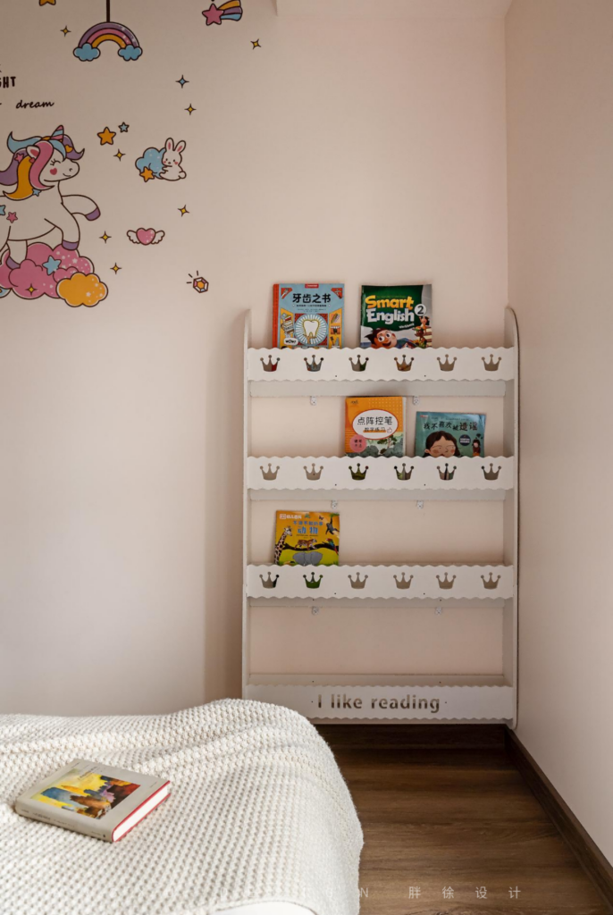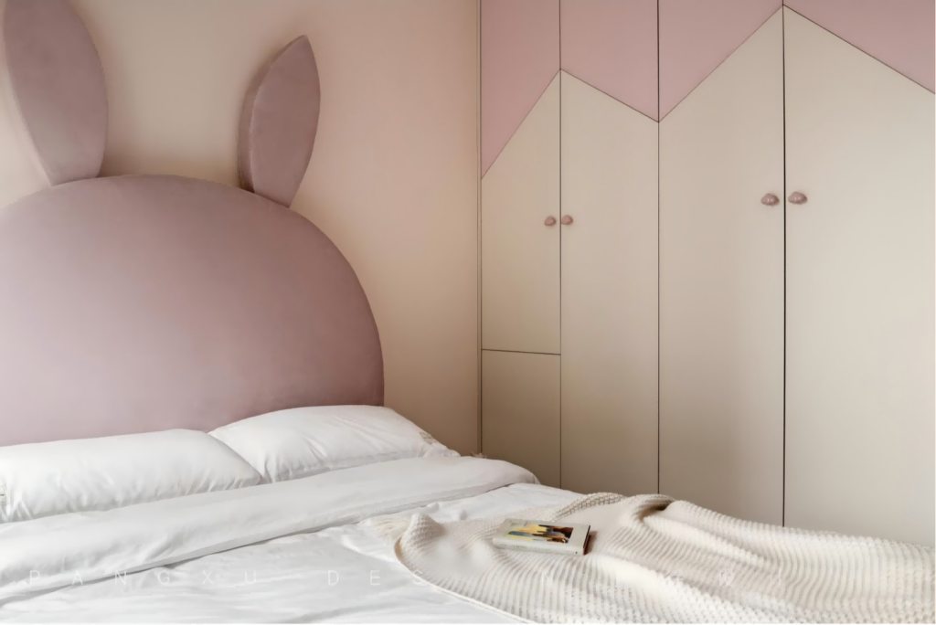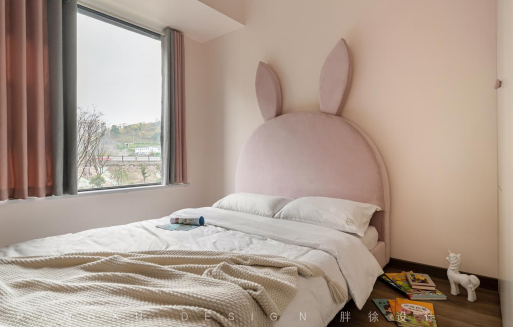@胖徐设计工作室:将粉色系的儿童房填入童趣的元素,营造的氛围温馨而明亮,留下适当的空间,不去陈设多余的家具,让孩子去创造属于自己的小小世界。