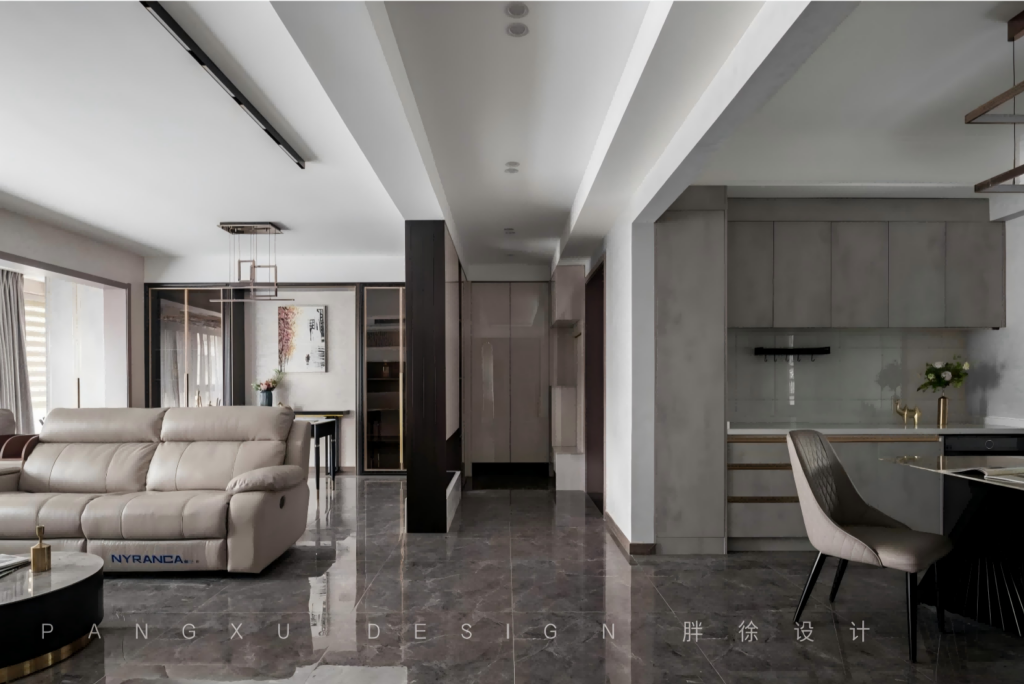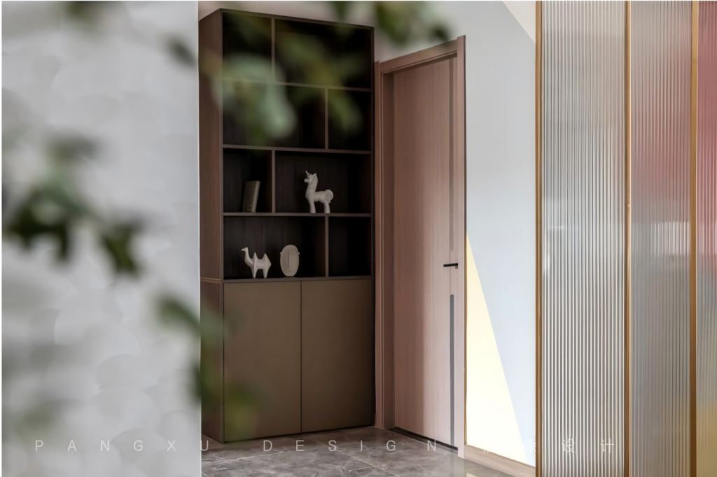 The tea colored transparent glass door and the cloakroom with the reaction light bar were full of young fashion. The simple metal texture handle was simple and exquisite, showing a proper extravagant temperament.