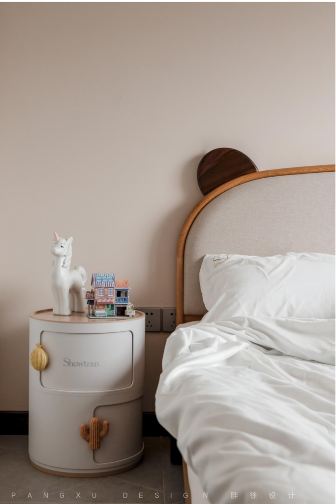 @胖徐设计工作室:儿童房简单温馨,暖色更易给人放松的空间包裹感,童趣的元素守护着孩子的纯真与烂漫。