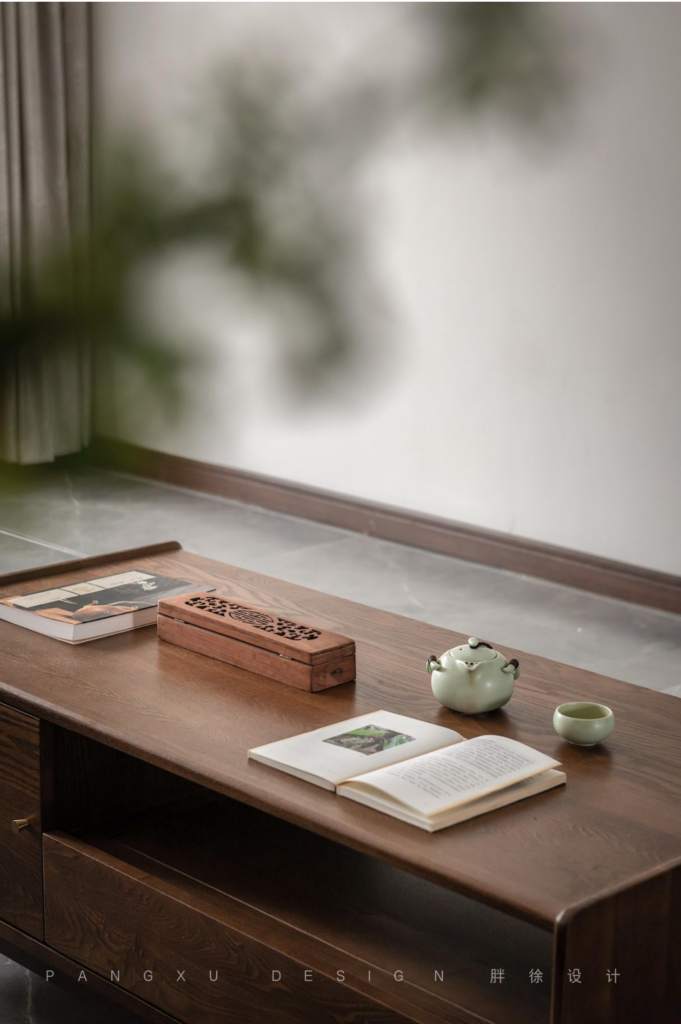 @胖徐设计工作室:木质肌理在日光的晕染下,安静而平和,于此品茶看书也是一种雅趣。