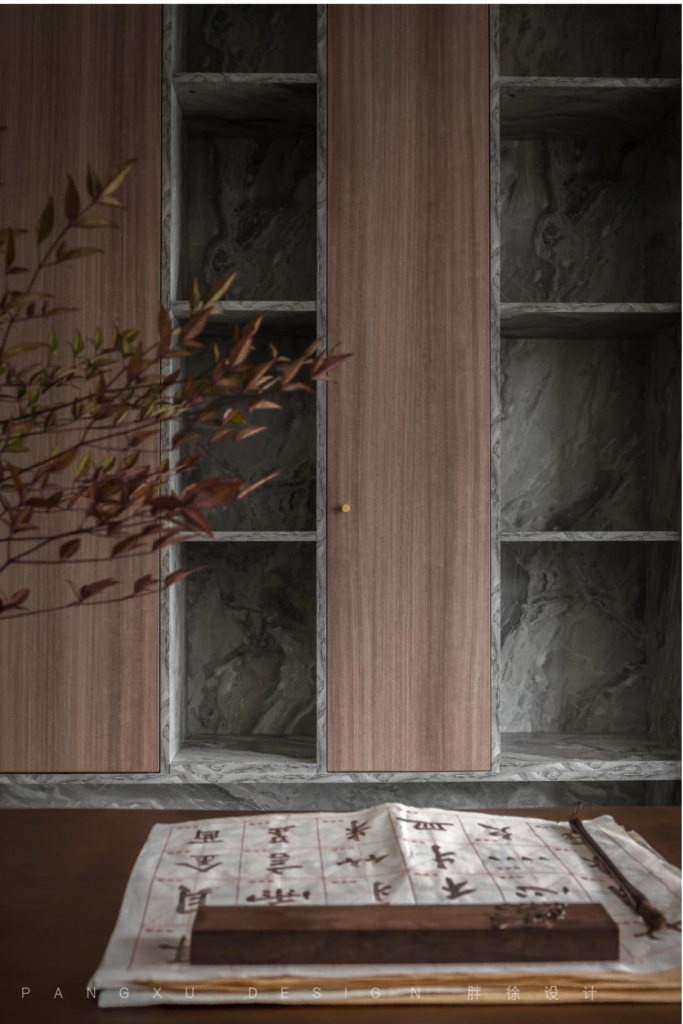 @胖徐设计工作室:木之温润,自然质朴,大面积原木铺就的书房,造就中式的端方雅正,一支红枫写满诗意的格调,满室墨香,静心而儒雅,中式的韵味于此展现。