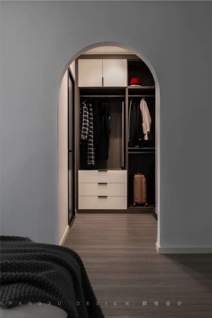 @胖徐设计工作室:井井有条的衣帽间,有灯火的温暖,也有家的温馨感。
