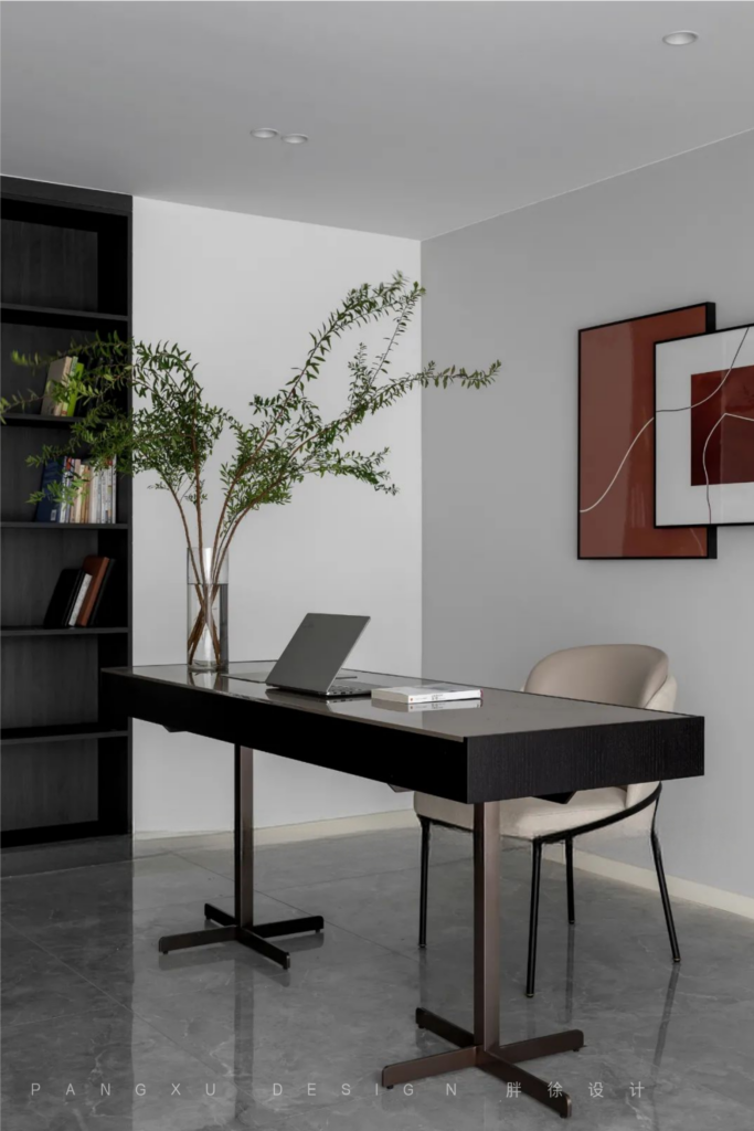 @胖徐设计工作室:开放式的工作区域,没有拘束感,更为自由放松,于此或看书品茶,轻松惬意。
