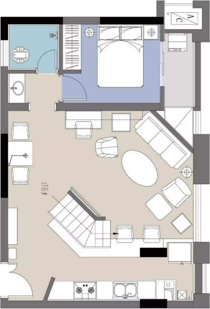设计师与业主的初次会面中,就想过把楼梯放在客厅中间的这种反传统的空间处理思想,这一个设计思维正和业主达成了共识。