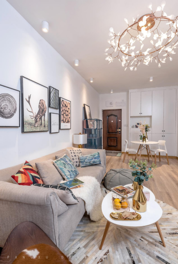在考设计之前我们和她交流中提到,这是她目前一个人居住的家,未来有了另一半会换房子,所以家里家具以可移动家具为主