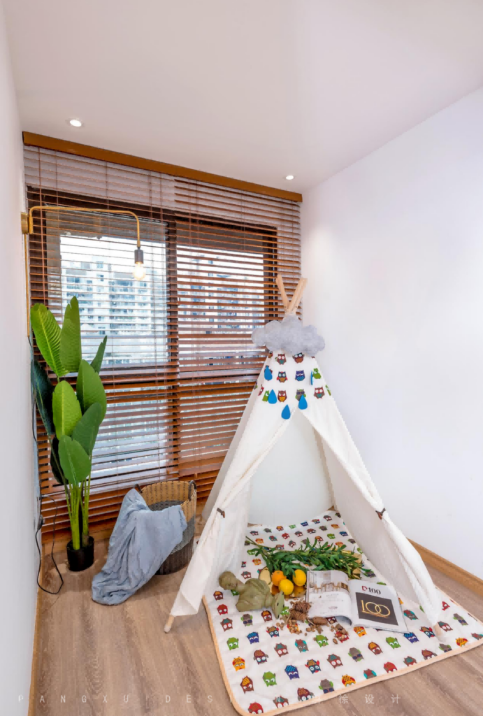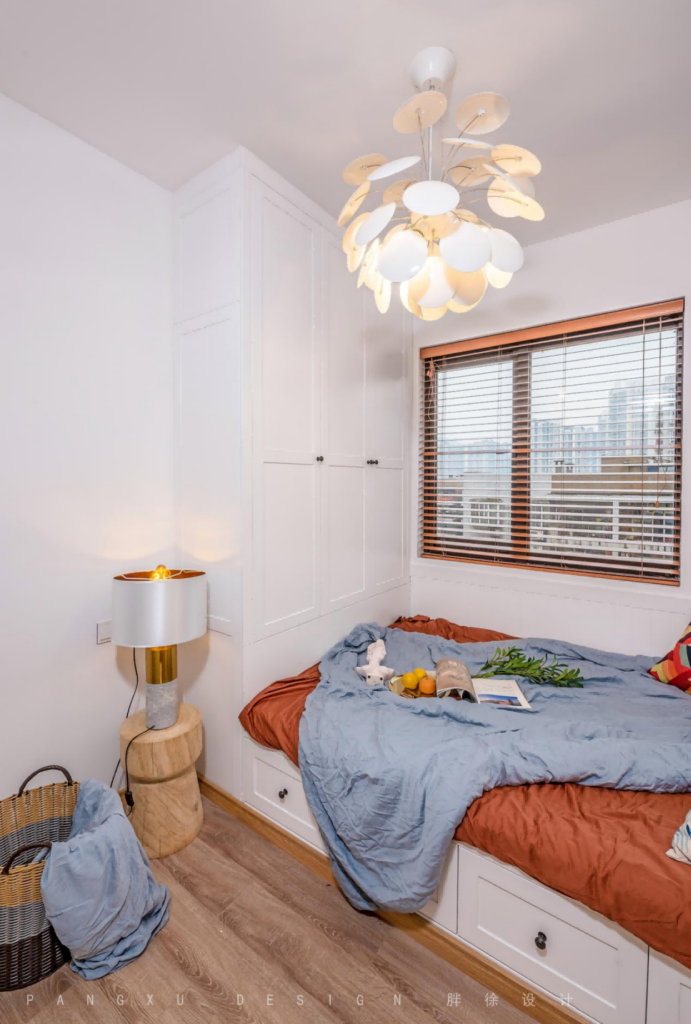 做了一个简单的榻榻米床,方面屋主日常收纳,且有亲友来住时也是一个舒适的空间
